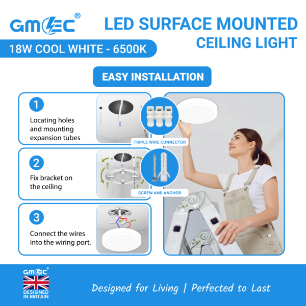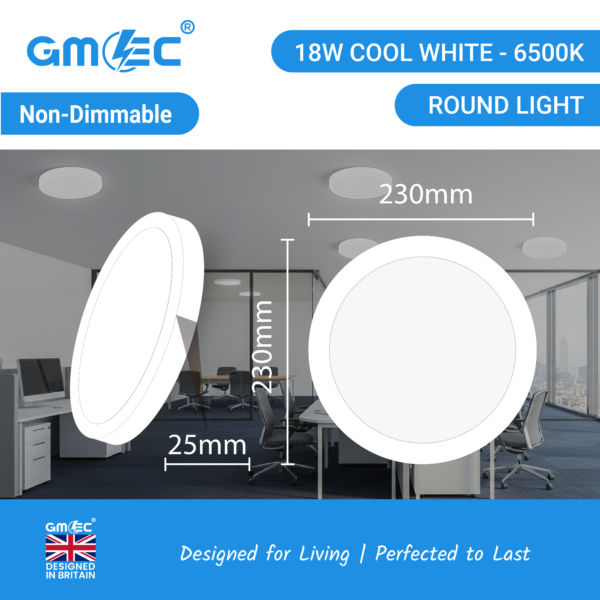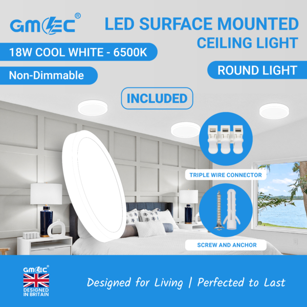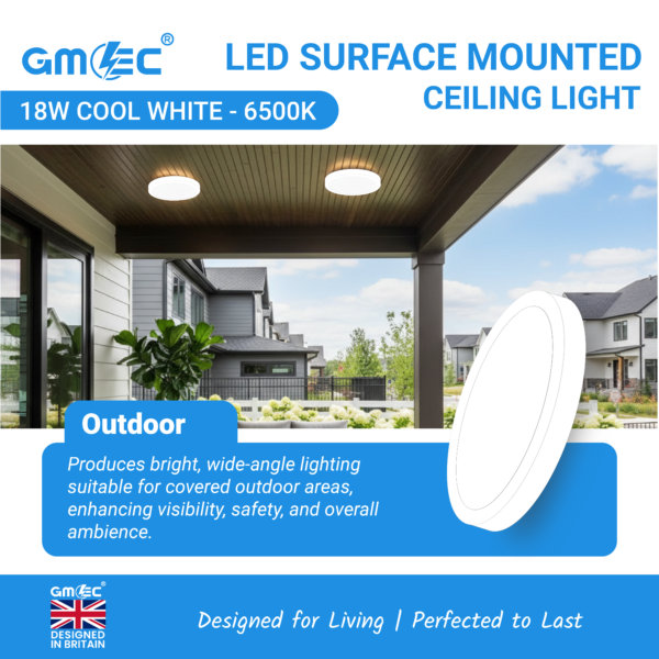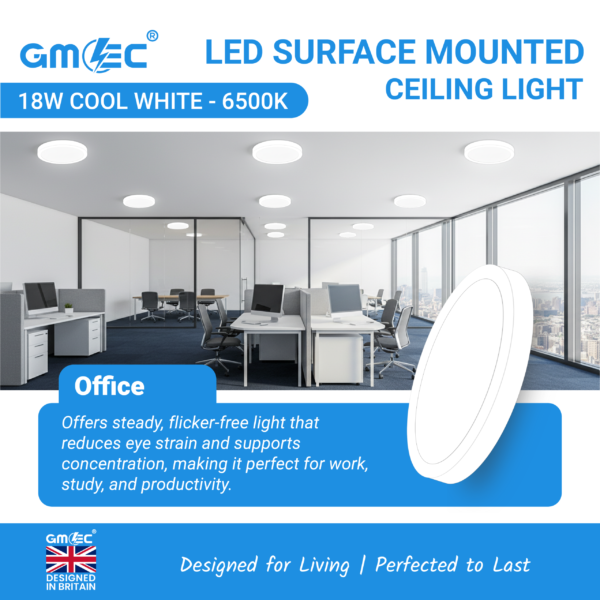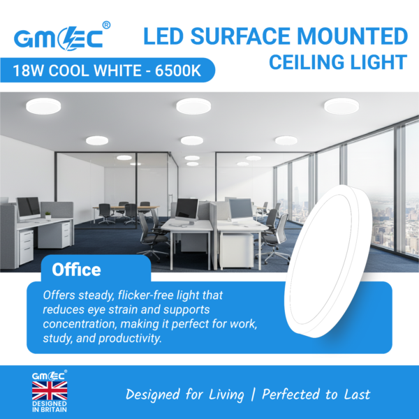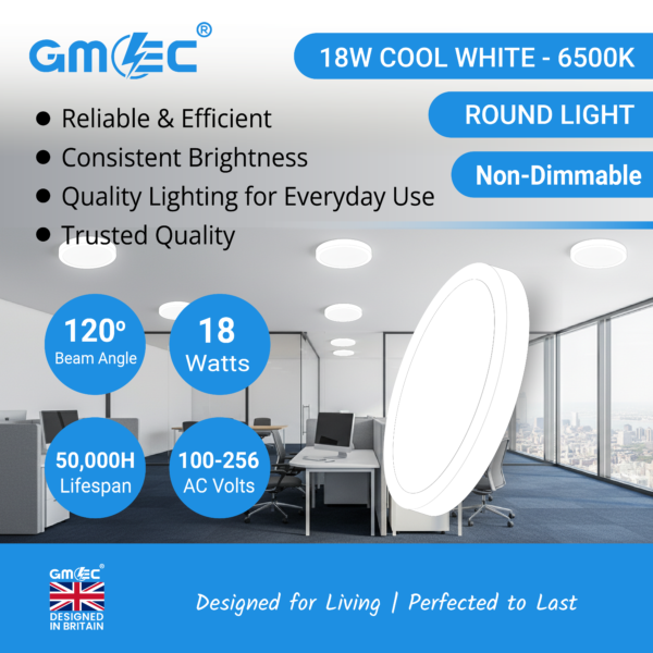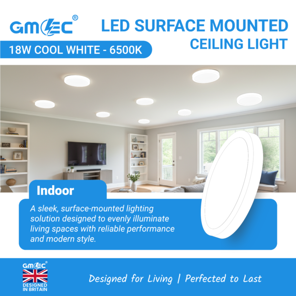 The GMEC 18W LED Surface Mounted Ceiling Light combines modern design, bright illumination, and long-lasting performance for reliable everyday lighting.
