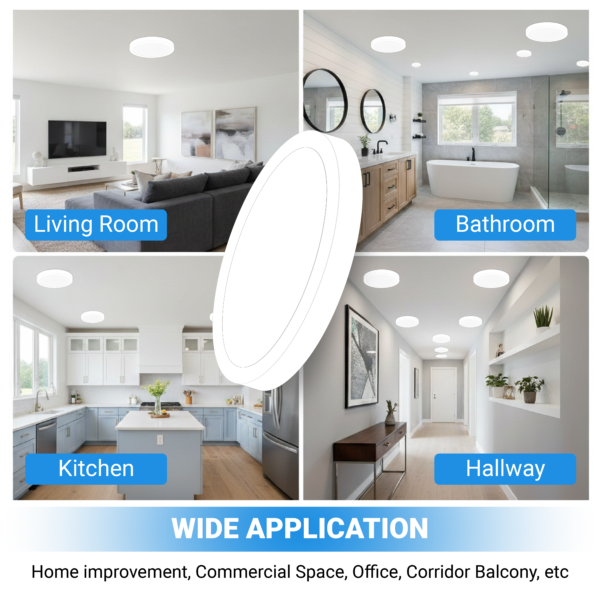 With flicker-free technology and a long-lasting 50,000-hour lifespan, this energy-efficient ceiling light is perfect for kitchens, bathrooms, bedrooms, living rooms, and office spaces.