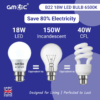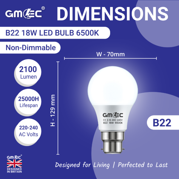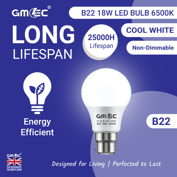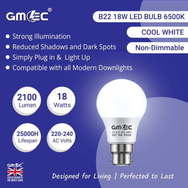 The B22 18W LED Bulb offers powerful cool white lighting with an impressive 2100 lumens output. Designed to save energy while providing bright, clear illumination, this LED bulb is perfect for high-traffic areas that require strong, consistent lighting.