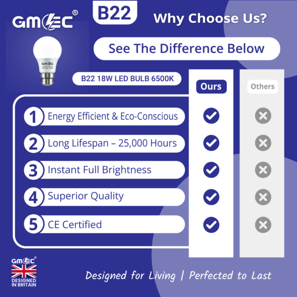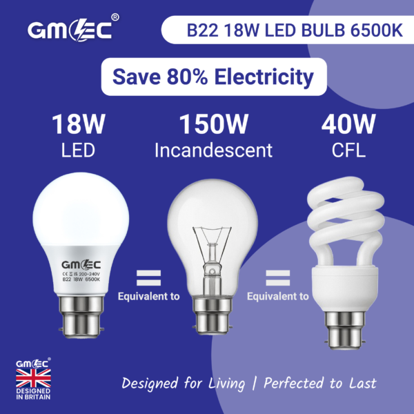 Make the switch to the B22 18W LED Bulb for efficient, long-lasting, and high-intensity lighting.
