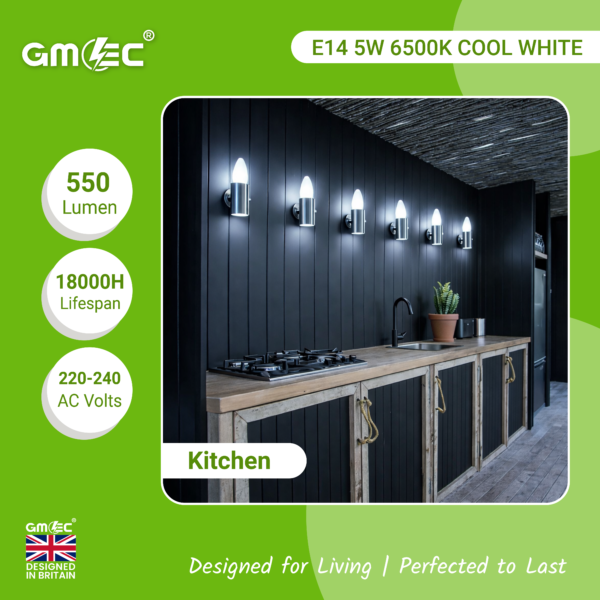 The E14 5W Cool White LED Candle Bulb is ideal for spaces that require bright, modern lighting while keeping energy consumption low.