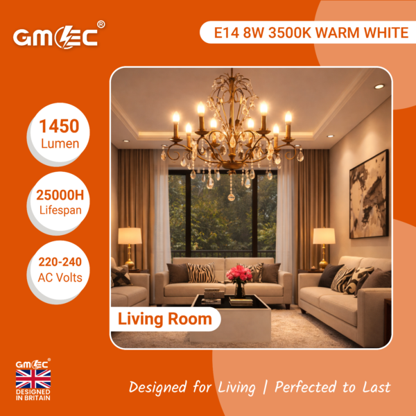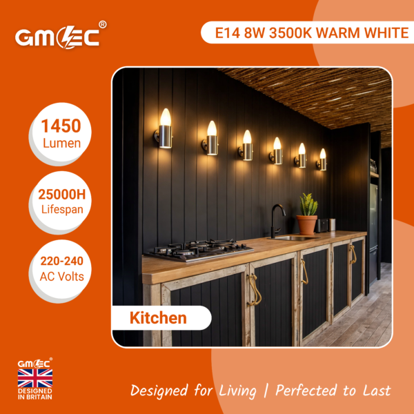 The E14 8W Warm White LED Candle Bulb is ideal when you need stronger warm lighting in a decorative fixture without increasing energy costs.