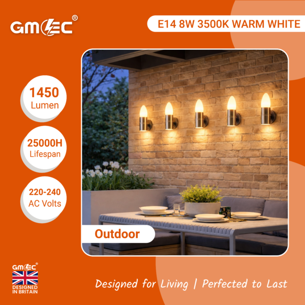 The E14 8W LED Candle Bulb Warm White 3500K combines powerful brightness with a classic decorative candle shape. Delivering an impressive 1450 lumens, this bulb is ideal for spaces that require stronger illumination while maintaining a warm and welcoming atmosphere.