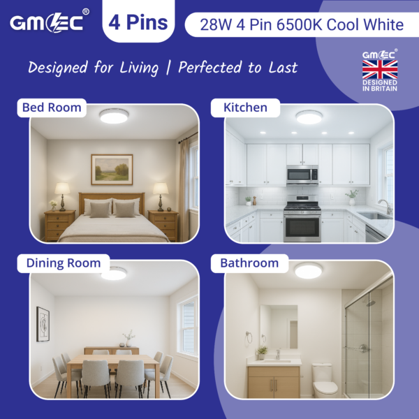 The GMEC 28W GR10Q 4-Pin 2D CFL Bulb is a reliable and high-output solution for professional lighting installations requiring maximum brightness.