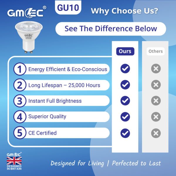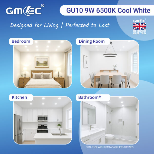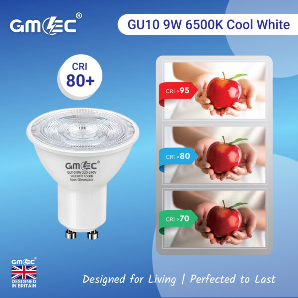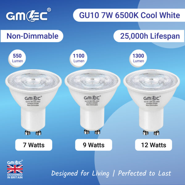 The GMEC 9W GU10 LED Bulb Cool White 7000K delivers powerful illumination with an impressive 870 lumens brightness, making it ideal for high-visibility areas such as kitchens, offices, retail displays, and commercial environments.