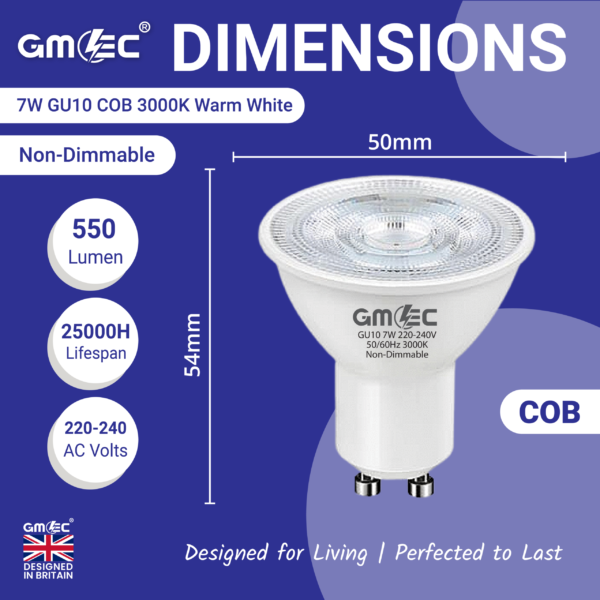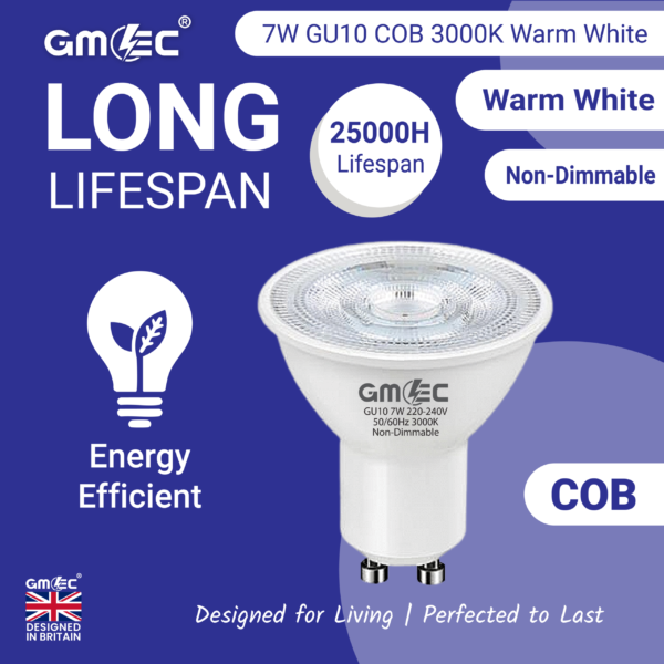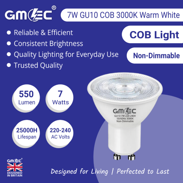 Make the change to our energy-efficient GU10 7W COB 3000K LED Bulb and enjoy soft, warm lighting for years to come while reducing energy consumption.